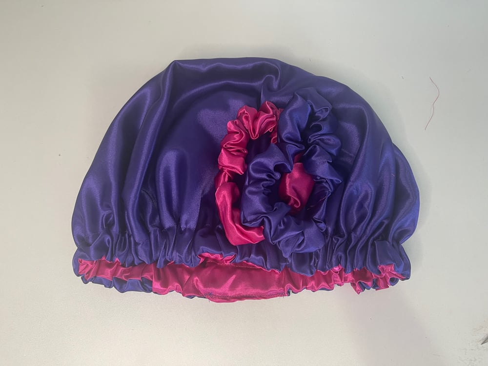 Create your own bonnet! Choose bonnet style (ruffles/no ruffles) and size (regular or jumbo). Next, choose any two colors from the options in the photo and add your choice to the notes.
